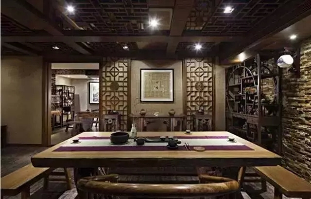 中國是文明古國,禮儀之邦。凡來了客人,沏茶,敬茶的禮儀是必不可少的。中國的茶文化主要是茶在精神文化中的體現,這遠比“茶風俗”“茶道”的范疇深廣得多。也是中國茶文化與歐美或日本茶文化的區別所在。今天我們就來學習一下中式茶室軟裝如何設計。