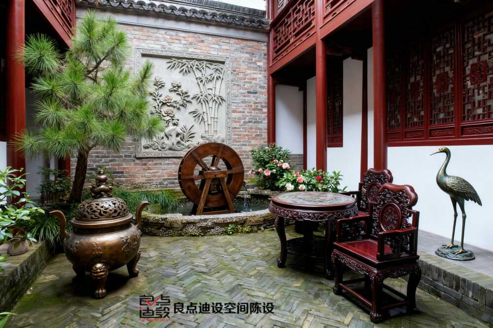 家人們,誰懂啊!一看到這張圖,整個人都靜下來了。這才是夢想中的中式茶館該有的樣子啊!白墻黛瓦、潺潺水車、綠意盎然… 今天咱就扒一扒,怎么用軟裝把商業空間做出這種“一進門就靜心”的詩意氛圍。