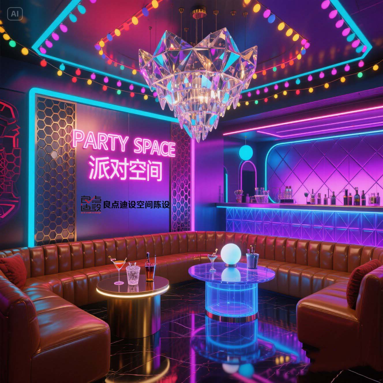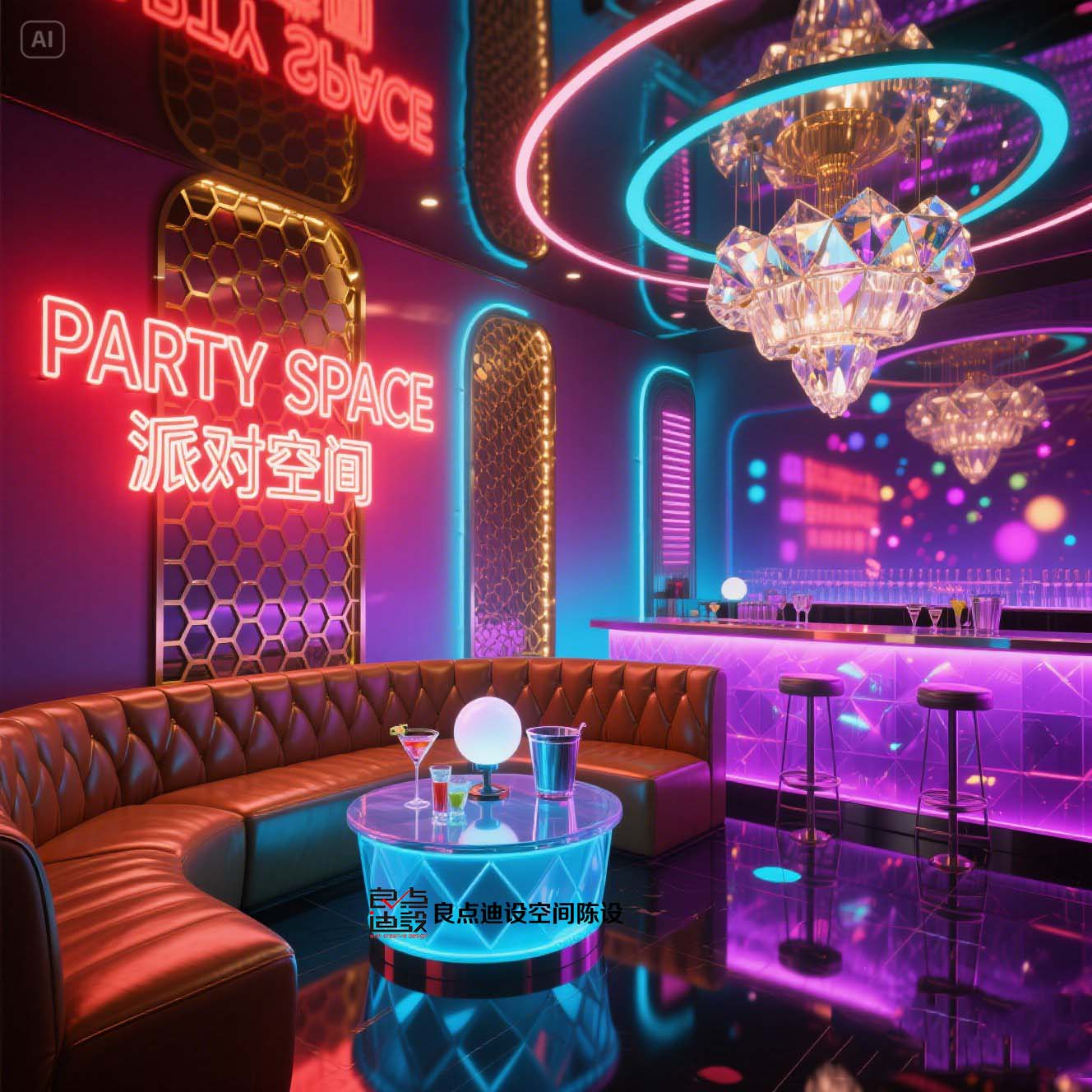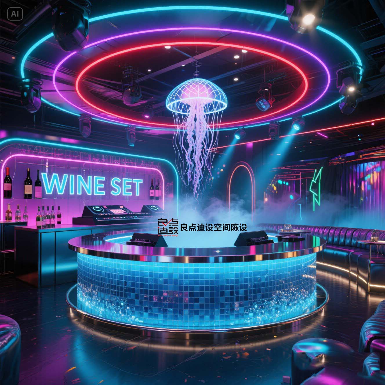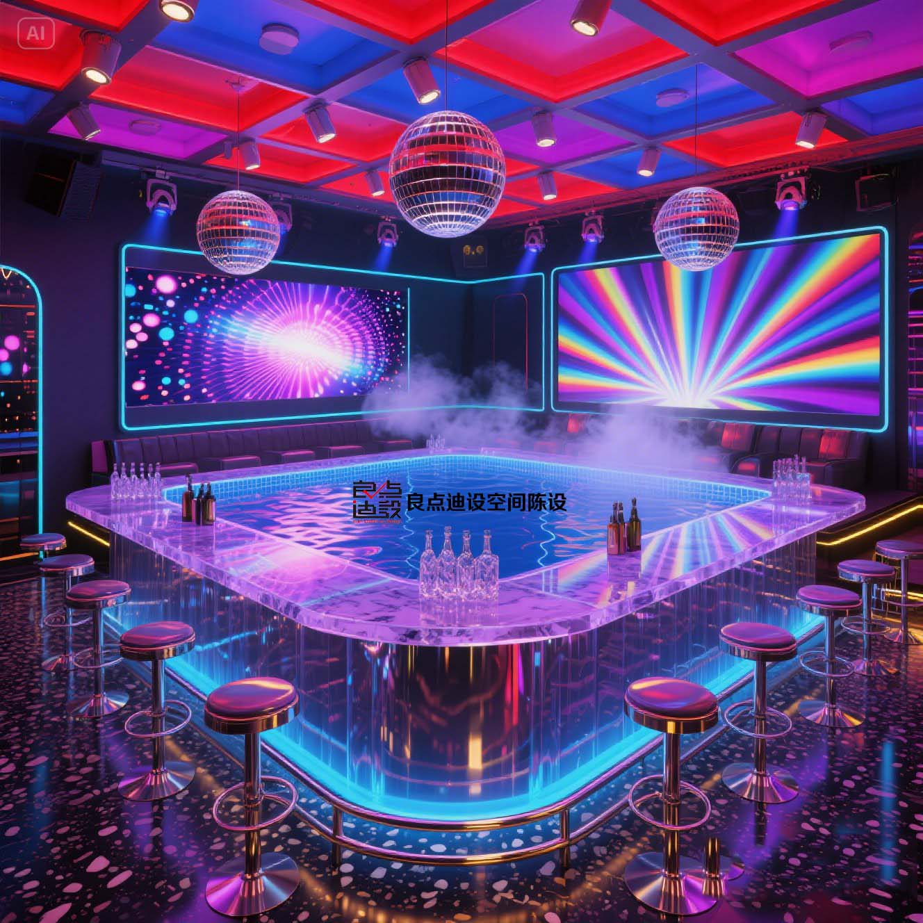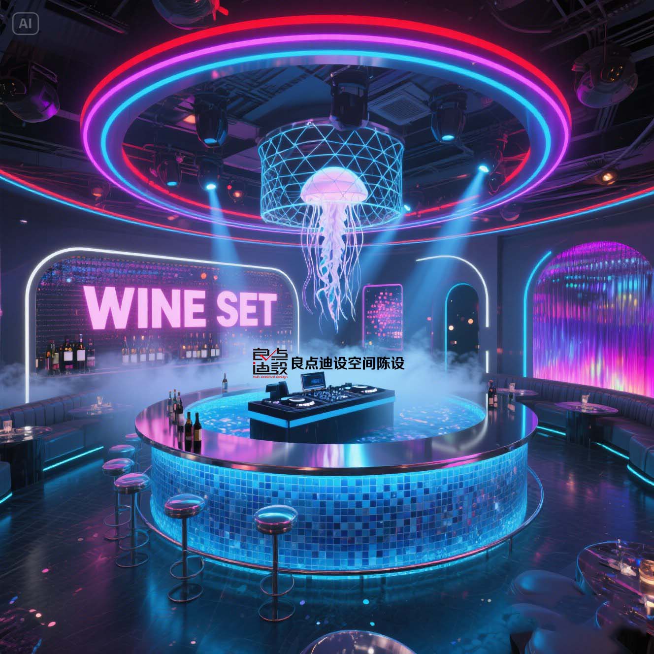 夜店酒吧裝修軟裝設(shè)計(jì)!藍(lán)色海洋遇上賽博霓虹