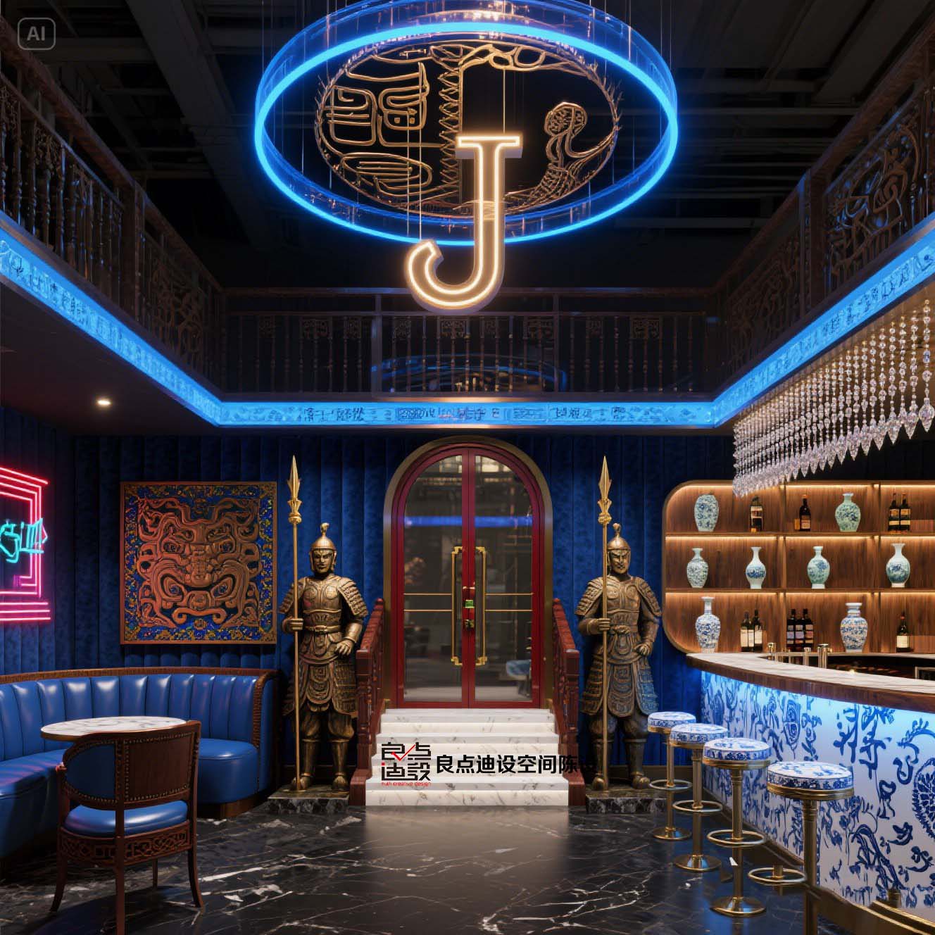 ??魔都新晉網(wǎng)紅新東方主義酒吧裝修軟裝設(shè)計(jì)出圈密碼!賽博朋克兵馬俑+青花瓷吧臺(tái)太絕了!