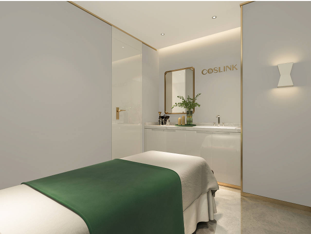 一般占整個店面面積的四分之三或三分之二不等,操作區是直接服務顧客的地方,要求以寬松、干凈、舒適為宜,還要考慮到顧客方便、暢通。音樂一定用中貝音調播放,優雅的古典名曲為佳。鏡子要明亮,椅子、床鋪要精美,外形要獨特,色調要統一。