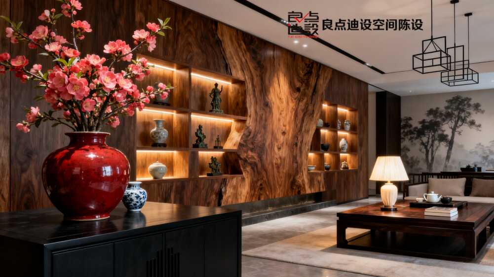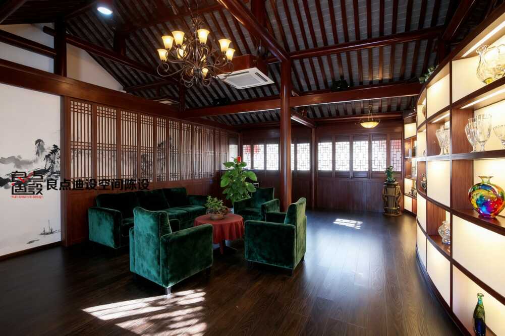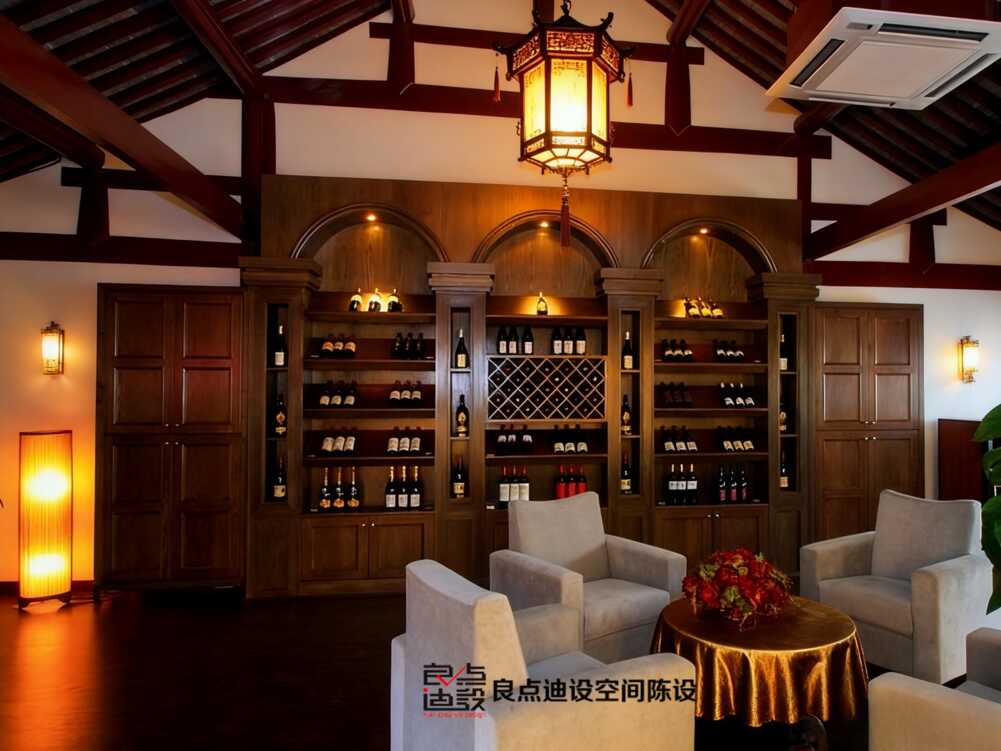 實木酒柜配皮沙發?這套茶館軟裝設計組合拳直接封神!
